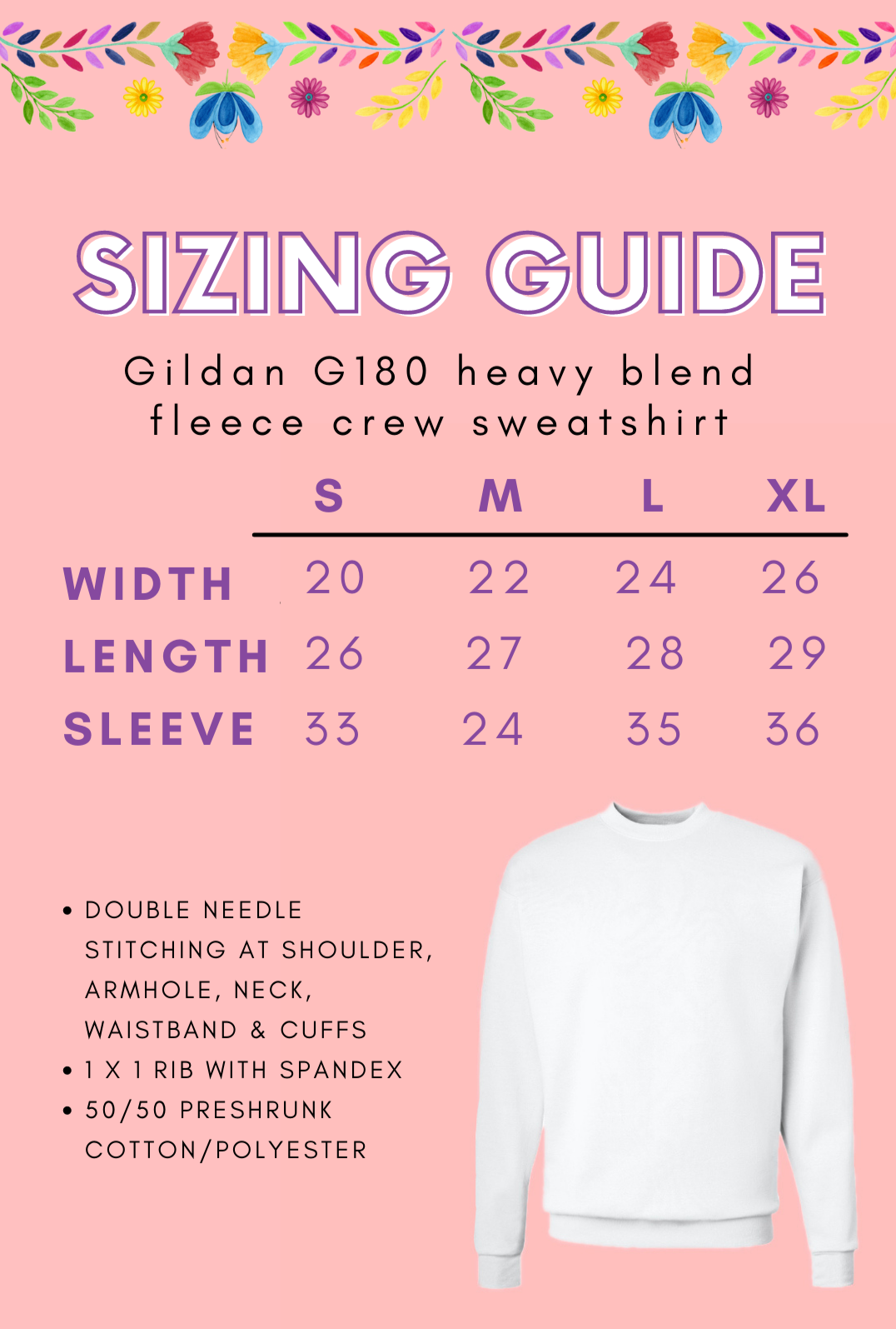 These soft Glidan G180 heavy blend fleece crew sweatshirts are heat pressed with high-quality UltraColor™ prints. Designs are soft matte, no shine nor tackiness. Sweaters are sized unisex and are made of 50% cotton/50% polyester.