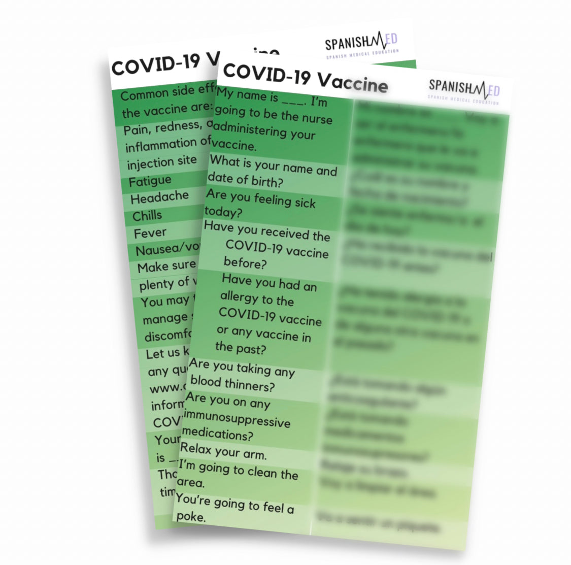 COVID-19 Vaccine Administration Spanish Translation Badges